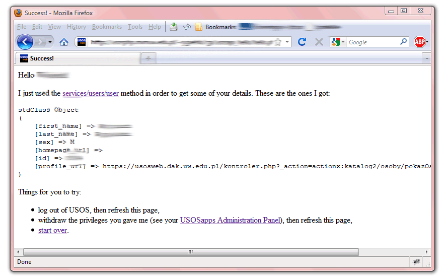 Consumer Key), executes a given USOS API method and returns the result. Might be
